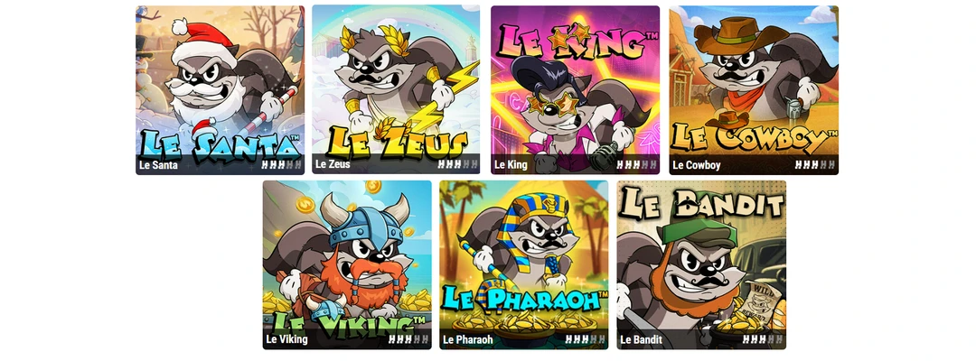 A similar development of franchises can be observed in the games The Dog House and Big Bass Bonanza from Pragmatic Play. However, we consider the series from Hacksaw Gaming to be the gem of this trend. Le Bandit 2023 and Le Pharaon 2024 were just the beginning. 2025 gave players six releases at once: Le Viking, Le King, Le Zeus, Le Cowboy, Le Santa, and Le Rapper.